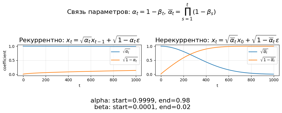 NoiseScheduler задаёт расписание шума по шагам времени (beta, alpha) и хранит предвычисленные коэффициенты.